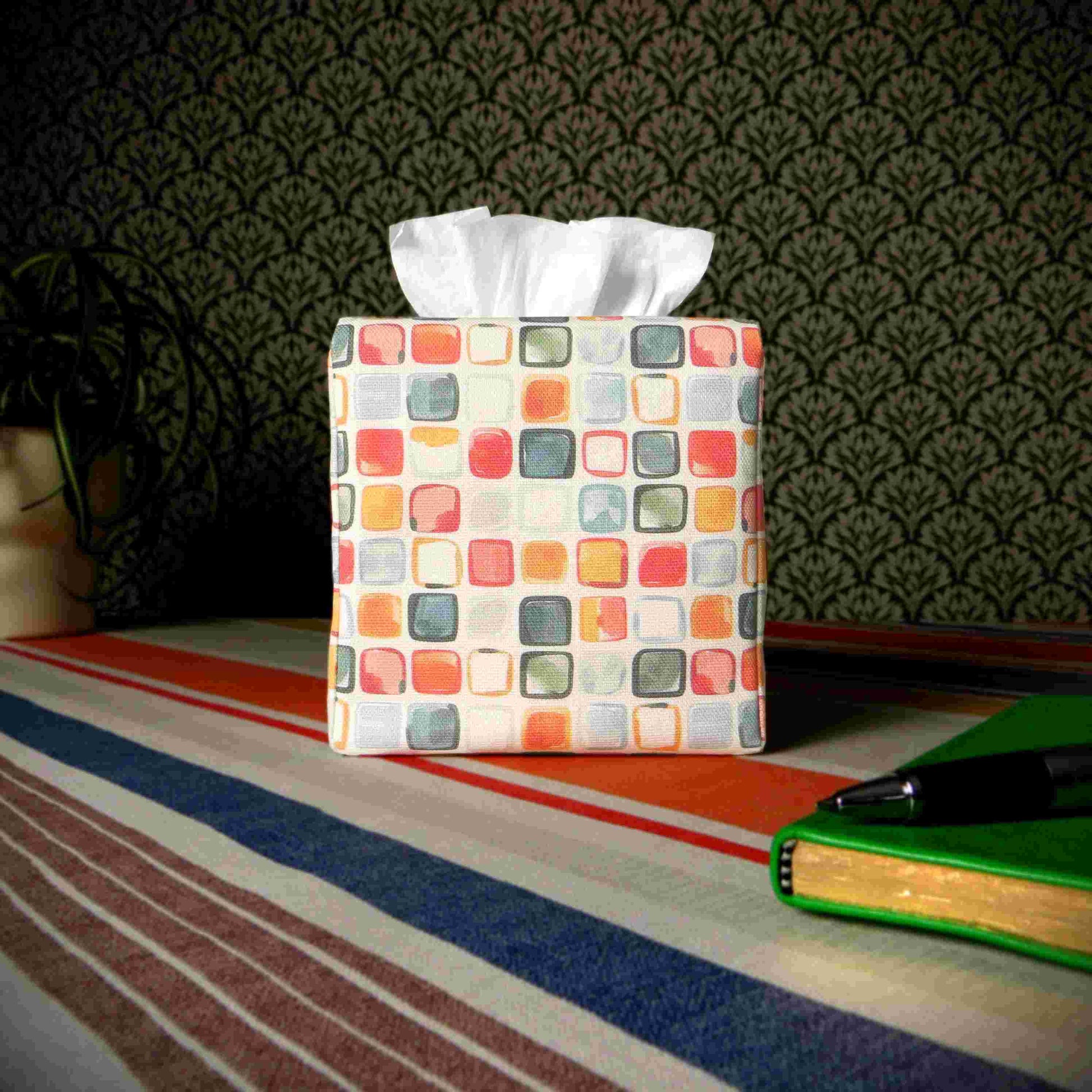 Cube Fabric Tissue Box Cover - Multicolour Squares