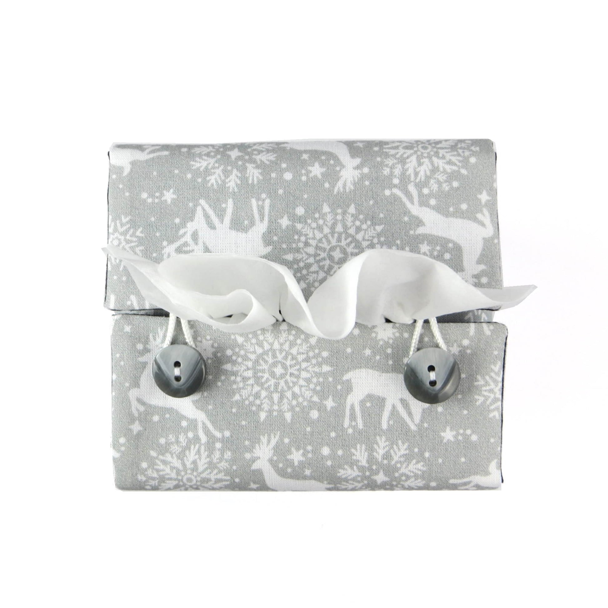 Cube Fabric Tissue Box Cover - Reindeer on Grey Christmas Design